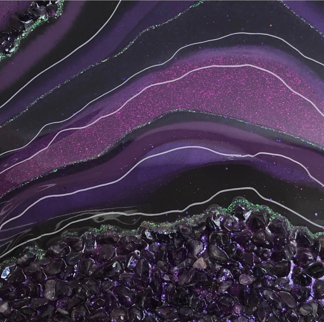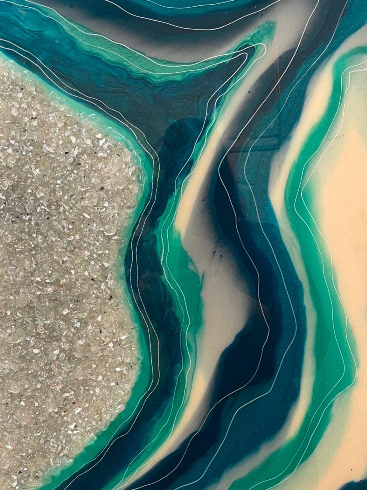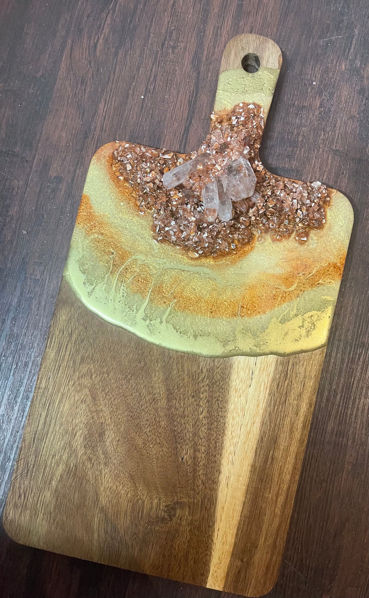 your choice of Ocean pour cheeseboard, Crystal cheeseboard, or Crystal resin painting size 8”x8”.